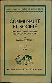 Description au verso du livre Voir larticle dÉmile Durkheim disponible ici pour téléchargement sur le livre de. Comme lindique le titre lauteur sest proposé danalyser deux concepts celui de la Gemeinschaft et celui de la Gesellschaft. Communauté et société selon Tönnies.
