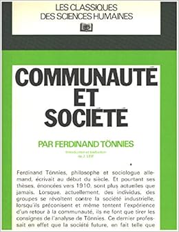 TÉLÉCHARGER FERDINAND TONNIES COMMUNAUTÉ ET SOCIÉTÉ GRATUITEMENT - Espaces de noms Article Discussion. Le foyer - la langue française maintient la métaphore - est le centre réel et. Un ré-examen du modèle de Tönnies Note biographique Il nest pas inutile de donner quelques précisions sur la vie de Ferdinand Tönnies qui tout compte fait reste un étranger pour la sociologie française.