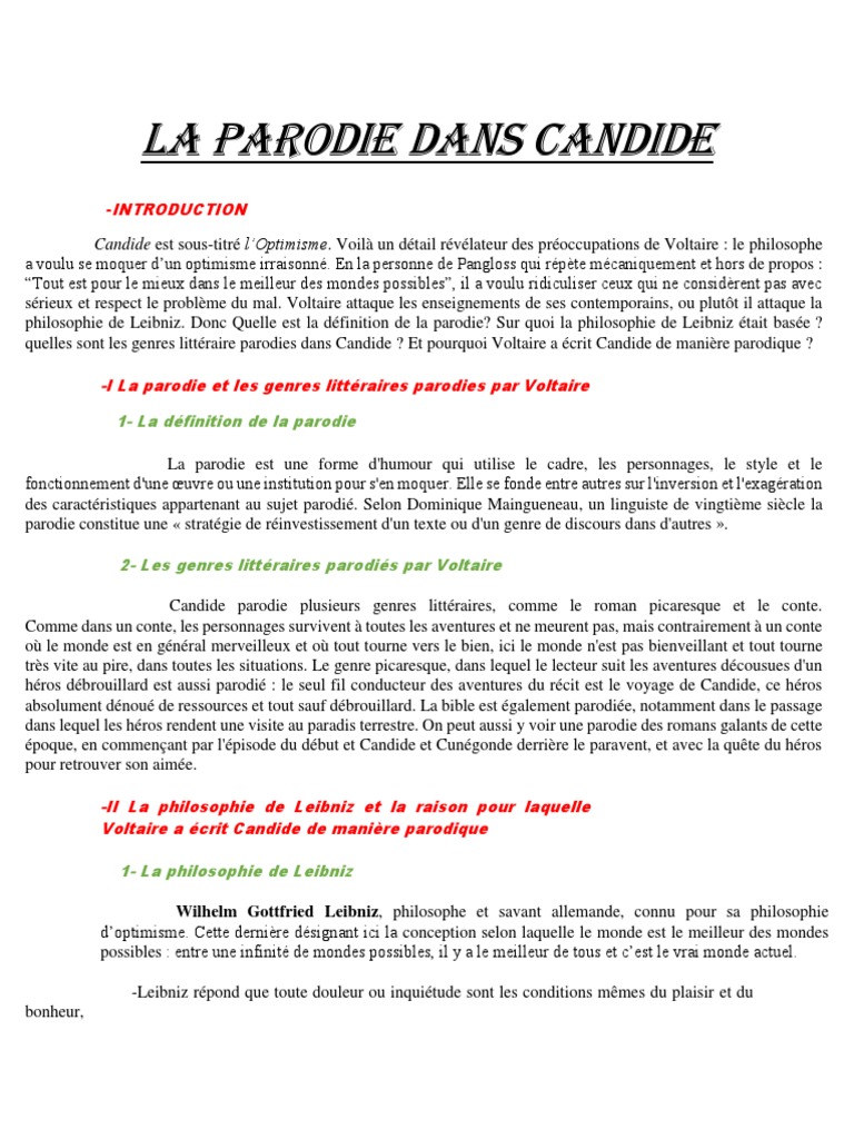 La Parodie Dans Candide Candide Parodie