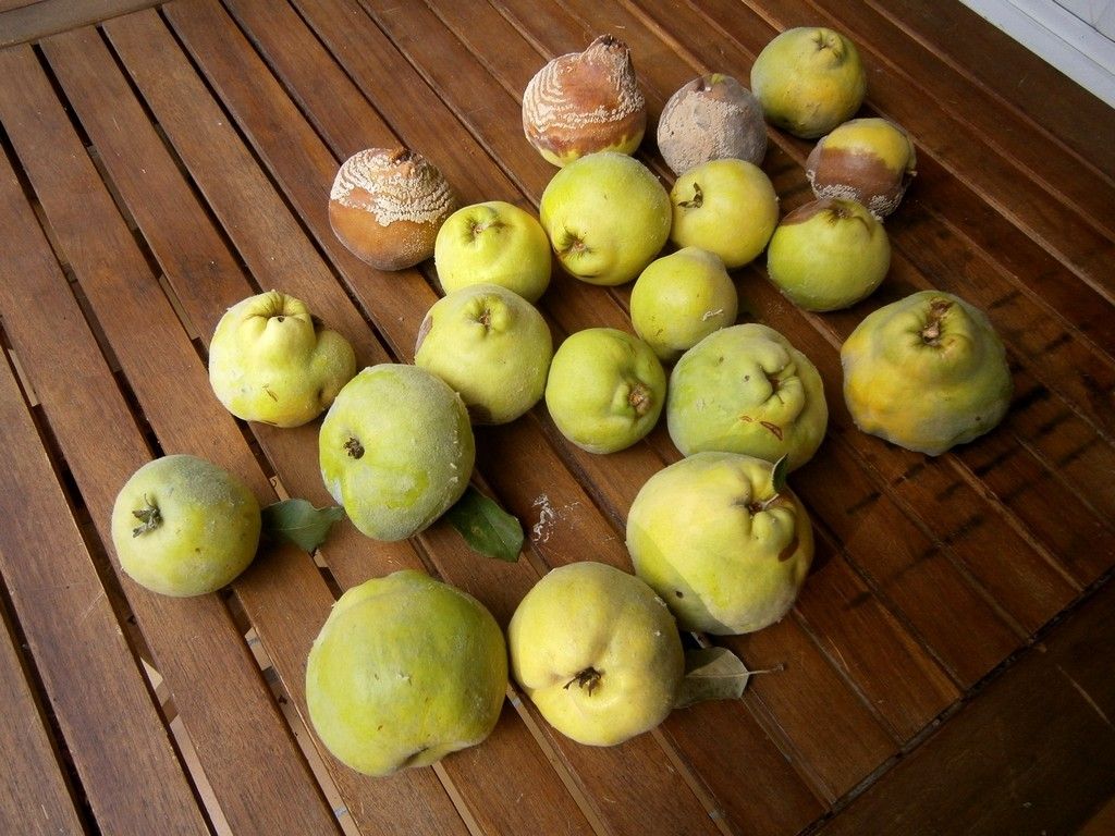 Choisissez le coing dans larbre lorsquil passe dune couleur vert vif à une couleur jaune riche et beurrée. Je les cueilles comme pour les poires je leur.